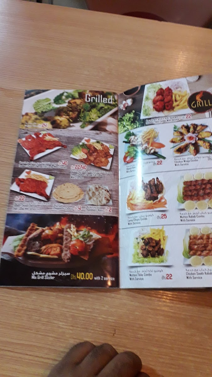 The menu features a variety of flavorful options, from spicy Schezwan noodles and hearty mix grill sizzlers to familiar favorites like shawarma rolls and biryani rice. Alongside these, refreshing choices such as fresh orange juice, mango фреш, and indulgent crush milkshakes add to the easygoing vibe of the place.
